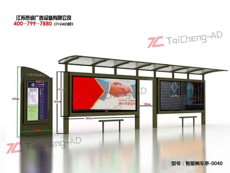 歡迎光臨江蘇泰誠設備科技有限公司 公司專業生產定做公交站臺、候車亭,宣傳欄,標識標牌等系列產品!